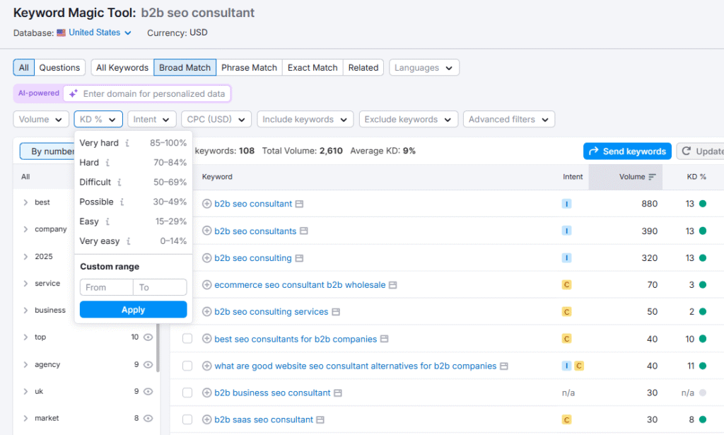 This tool ‘Keyword Magic’ feature is a treasure when used wisely.How to use: