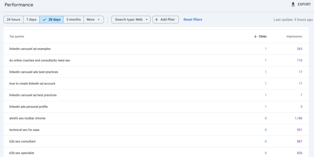 When your site has decent performance over the past few months, go to the Queries section and find the queries populated by the tool.