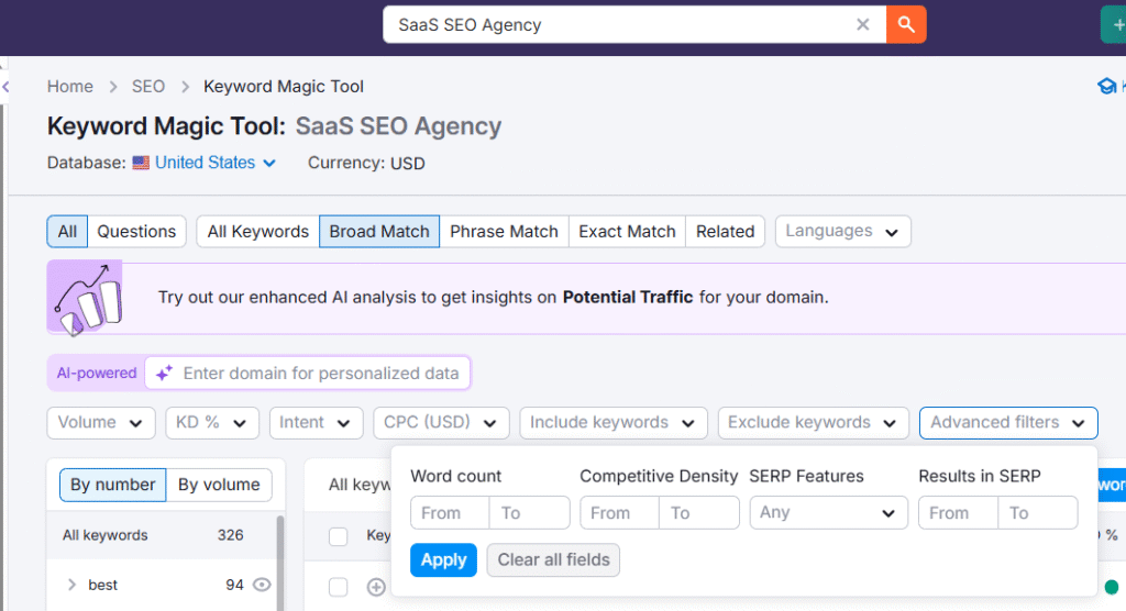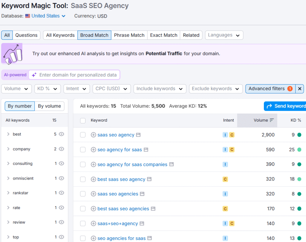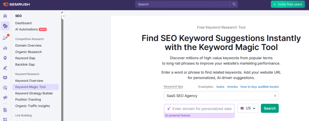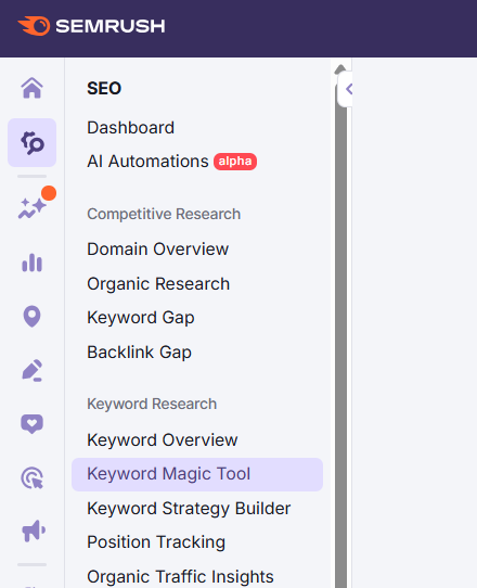 Go to “Keyword Magic Tool” on your SEMrush account