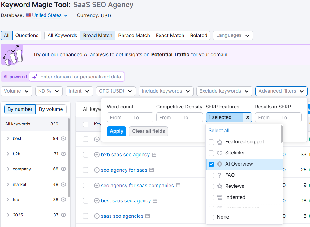 How to Find AI Overview Keywords through SEMRush?