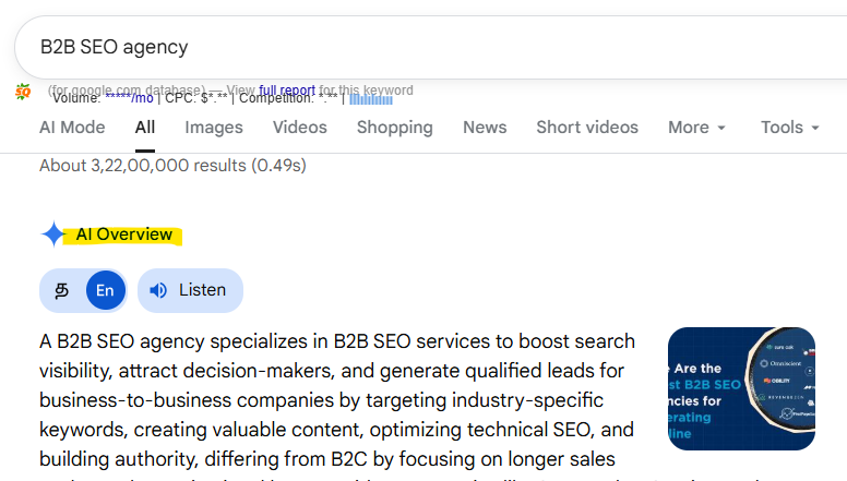 Here you find the AI Overview Keywords