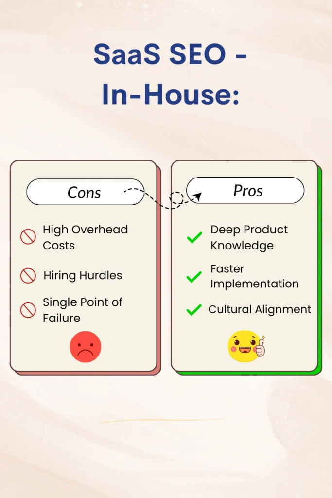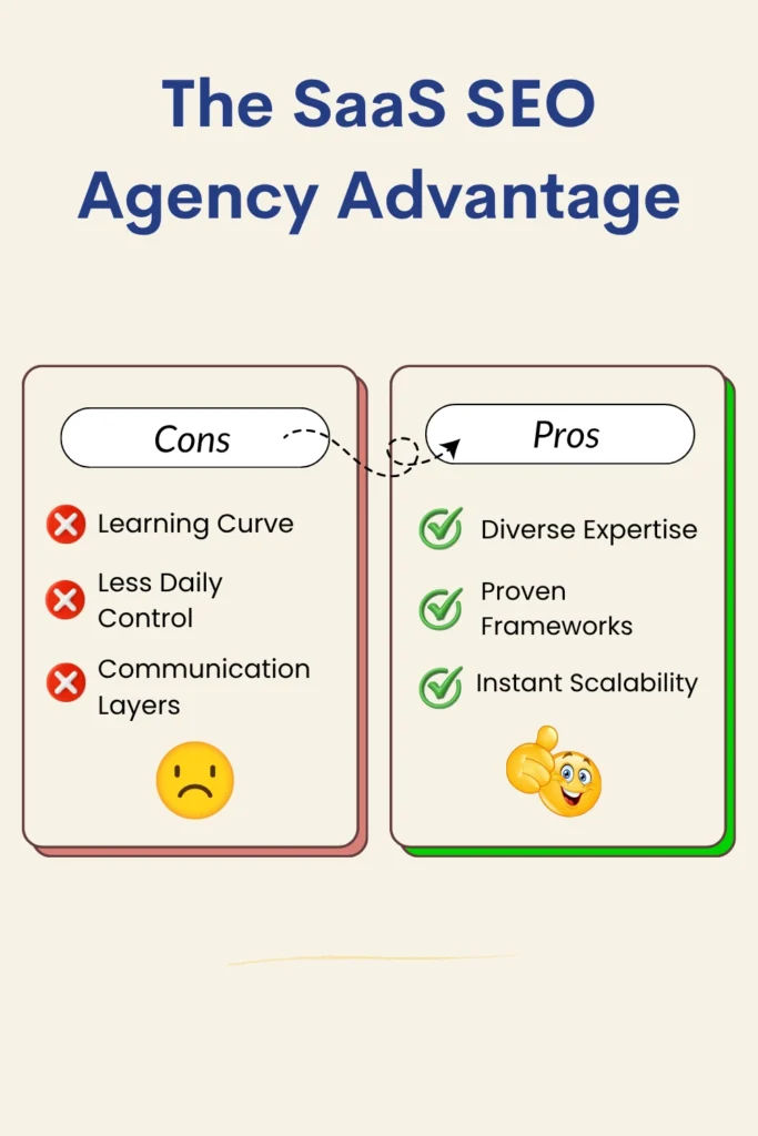 Do you hire a full-time SEO specialist to sit in your office and learn every corner of your product? Or do you hire a team that already knows the SaaS landscape because they have solved these exact problems for a dozen other SaaS companies?